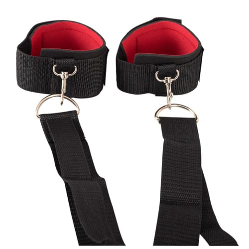 Deze verstelbare boeien voor op het bed is een eenvoudig te gebruiken set. Ze zijn op gemakkelijke wijze aan het bed te bevestigen en natuurlijk aan je partner. De mooi uitgevoerde boeienset heeft een lange band (5 M) en is voorzien van meerdere metalen D-ringen. Met de karabijnhaken kun je de handboeien aan deze D-ringen bevestigen. De boeien zijn eenvoudig te sluiten en te verstellen door het klittenband.