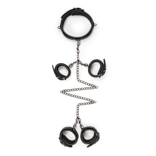 De mogelijkheden zijn eindeloos met deze geweldige bondage-set! Hij bestaat uit een halsband, handboeien en enkelboeien die gemakkelijk van elkaar gescheiden kunnen worden door middel van de clipsluitingen. De speeltjes zijn gemaakt van stevig kunstleer gevoerd met schuim, waardoor ze duurzaam zijn en comfortabel om te dragen. De halsband is verstelbaar van 45 tot 58 cm, de handboeien van 11 tot 28 cm en de enkelboeien van 13 tot 30 cm. Gebruik deze speciale set in combinatie met andere spannende speeltjes, zoals ball gags, zweepjes en tepelklemmen voor een extra opwindende ervaring.