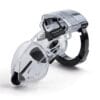 Deze kuisheidskooi van Mystim komt met een elegante koffer met genoeg ruimte voor alle accessoires. De koffer bevat ook een 2 millimeter draad (female) om de kuisheidskooi te verbinden met de Mystim Tension Lover of Mystim Pure Vibes bedieningsunit. Daarnaast bevat de koffer een gebruiksaanwijzing. Het meegeleverde slot en de set met 5 plastic zegels zorgen ervoor dat er geen ontsnapping mogelijk is. Voor de vergeetachtige gevangene worden er naamplaatjes meegeleverd waarop staat: " hands off this prisoner belongs to…" welke in de houden van de kooi passen. Een kleine herinnering aan wie de kooi bezit!De lengte van de kuisheid peniskooi kan in 4 lengtes en 6 diameters aangepast worden, zodat de peniskooi elke man past! Afmetingen:Lengte: 8,2 centimeter, steeds met 4 millimeter te verlengen.Binnendiameter: 3,4 centimeter bij opening, 4,7 centimeter op het wijdste punt. ZDe opening diameter is naar 6 afmetingen aan te passen, van 3,3 tot 5,4 centimeterLet op! De elektrofunctie is alleen te gebruiken wanneer aangesloten op de Mystim Tension Lover of Mystim Pure Vibes bedieningsunit. WaarschuwingNiet gebruiken bij hartklachten/pacemaker of met hartritmestoornissen Niet op oogleden plaatsenNiet op een beschadigde huid plaatsenVermijd abrupte verandering in de schok-in/afstellingBuiten bereik van kinderen bewarenZet de bedieningsunit pas aan nadat u de accessoires op het lichaam hebt aangebracht, niet eerder.