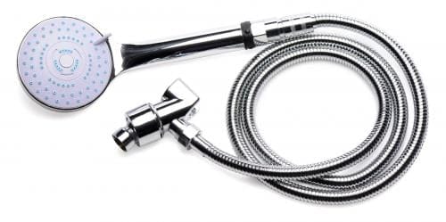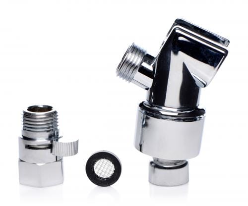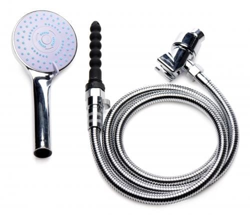 Deze complete douchekop set is ideaal voor als je altijd op een snelle manier verzekerd wilt zijn van een compleet schoon gevoel. De set bestaat uit een luxe douchekop met keuze uit 5 straalstanden, een flexibele slang, een koppelstuk voor op de douchekraan en een siliconen flexibel opzetstuk voor anaal gebruik. De douchekop biedt een discrete opbergruimte voor de intiemdouche. Met 1 simpele handeling kun je deze tevoorschijn halen en uiteraard berg je hem weer net zo snel op. De intiemdouche is tevens eenvoudig los te koppelen zodat je deze kunt reinigen. Laat deze goed drogen voordat je hem weer terug plaatst. Deze set is op de meeste douchekranen aan te sluiten maar voor een juiste keuze raden wij aan om de gegeven afmetingen goed te controleren en deze te vergelijken met je eigen aansluiting. -de schroefkop die op de aansluiting van de douchekraan gaat heeft een diameter van 1.9 cm.-de totale lengte van alleen de doucheslang is 144 cm.-De intiemdouche is voorzien van 5 openingen en heeft een lengte van 12.7 cm. De invoerdiepte is 10 cm. De maximale diameter is 1.78 cm. Let op: Gebruik je de intiem douche zowel anaal als vaginaal? Reinig zowel de binnen- als buitenzijde altijd zeer goed met lauwwarm water en een toycleaner om eventuele (schadelijke) bacteriën te minimaliseren.