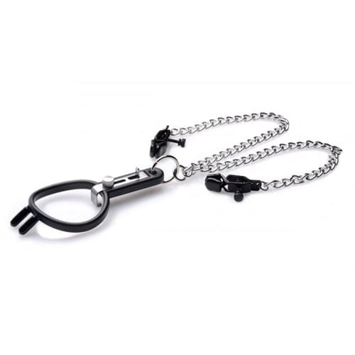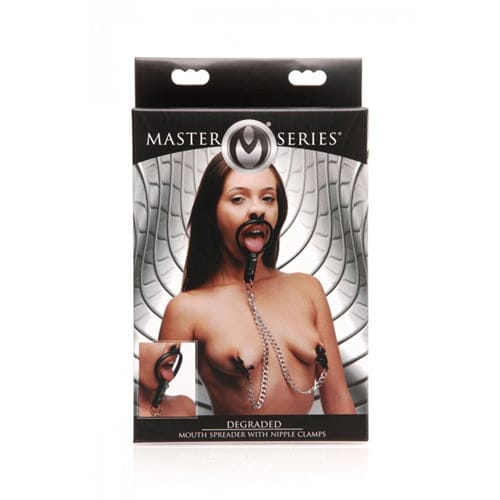 De mond van de sub zal altijd staan met deze mondspreider van Master Series. De mondspreider is voorzien van neusplugs en een haakje dat de mond opent. Aan de spreider zijn kettingen met daaraan tepelklemmen bevestigd. De klemmen zijn verstelbaar waardoor je zelf kunt bepalen hoeveel druk er op de tepels komt. Wie durft zijn of haar grenzen over te gaan?