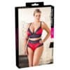 Deze zachte BH heeft satijnen cups en brede kanten randen. De bijpassende slip is hoog uitgesneden waardoor je billen perfect uitkomen. De set is comfortabel om te dragen en leuk te combineren met een paar sexy kousen.