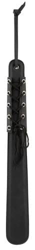 Uitdagende, 100% vegan paddle. Dit speeltje is essentieel bij een kinky seksspel. Geef je partner een liefdevolle tik of een uitdagende hardere tik. De zwarte stijlvolle paddle is gemaakt van kunstleer en dus diervriendelijk. De paddle is gemakkelijk in het gebruik en door zijn vorm is hij comfortabel om vast te houden.